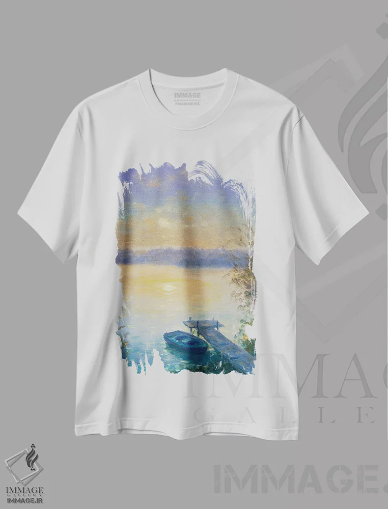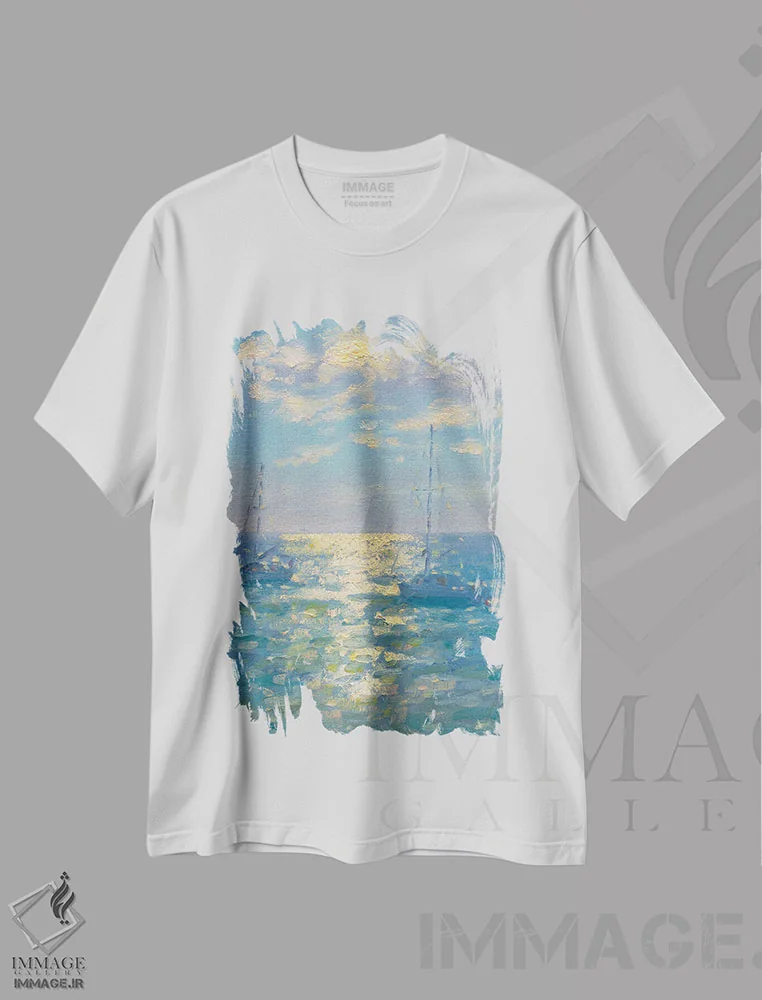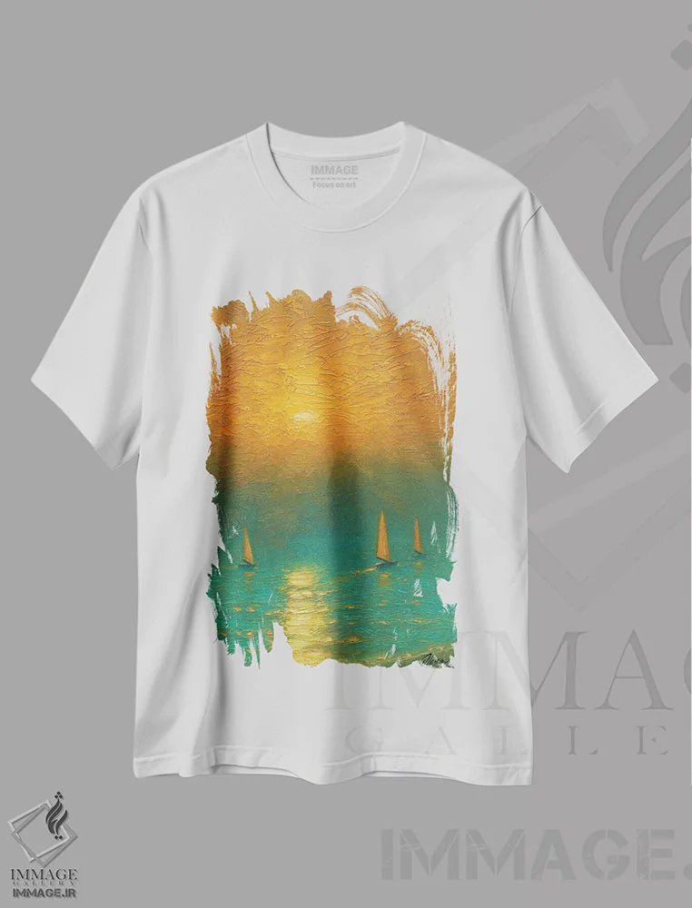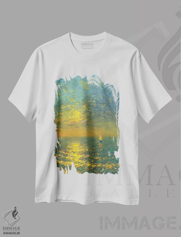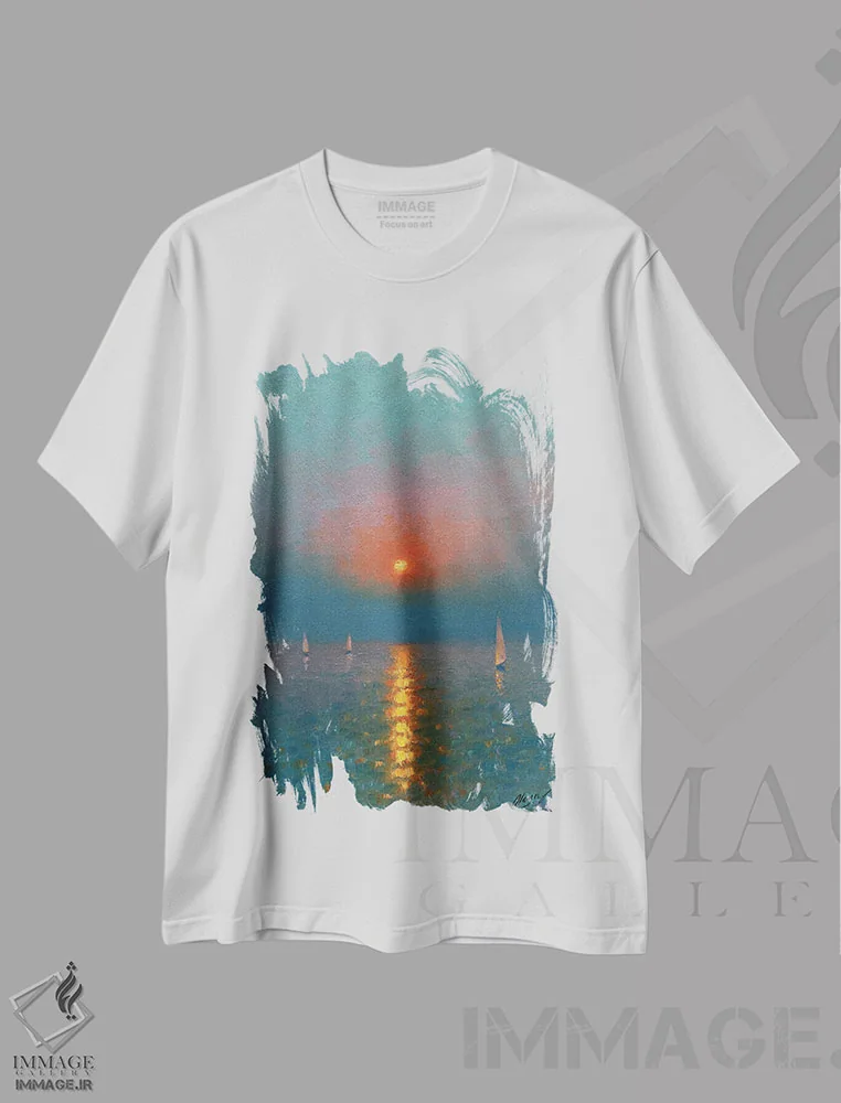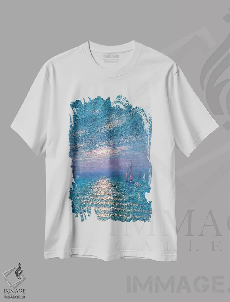 تیشرت سفید طرح دار دریای عصر دوم، هنر فاخر معاصر اثر دمیتری اولین | فروشگاه ایماژ تیشرت طرح دار دریای عصر دوم اثر دمیتری اولین