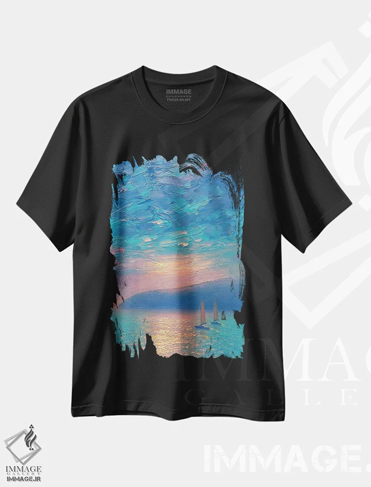 تیشرت مشکی طرح دار دریای شبانگاهی III، هنر فاخر معاصر اثر دمیتری اولین | فروشگاه ایماژ تیشرت طرح دار دریای شبانگاهی III اثر دمیتری اولین