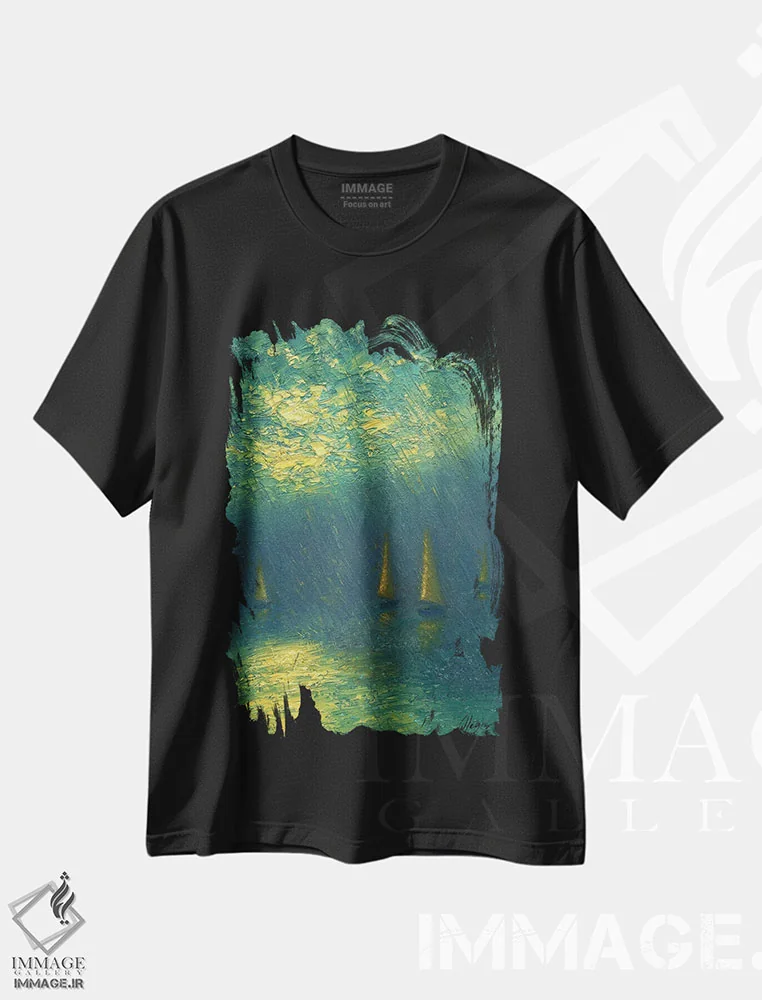 تیشرت مشکی طرح دار شب مهتابی، هنر فاخر معاصر اثر دمیتری اولین | فروشگاه ایماژ تیشرت طرح دار شب مهتابی اثر دمیتری اولین