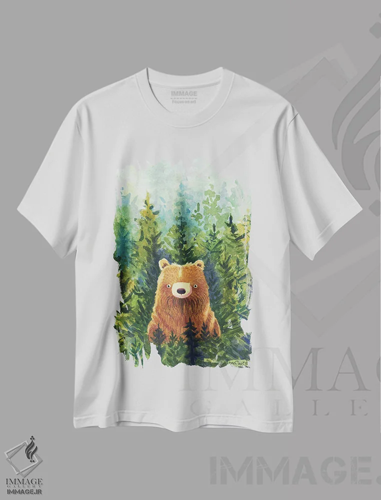 تیشرت سفید طرح دار جنگل خرس قهوه ای، مدیوم اثر دن تاویس | فروشگاه ایماژ تیشرت طرح دار جنگل خرس قهوه ای اثر دن تاویس