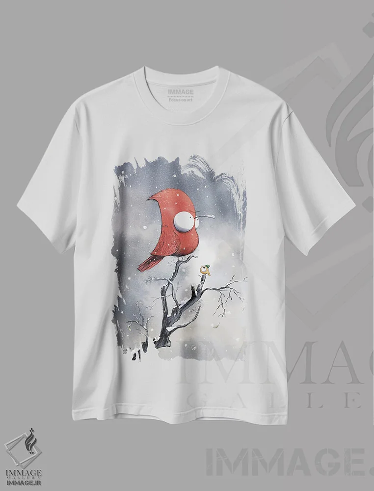 تیشرت سفید طرح دار برخی پرندگان زمستان را دوست ندارند، مدیوم اثر دن تاویس | فروشگاه ایماژ تیشرت طرح دار برخی پرندگان زمستان را دوست ندارند اثر دن تاویس