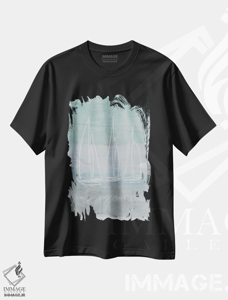 تیشرت مشکی طرح دار قایق ها و امواج I، آبستره اثر دن منیلی | فروشگاه ایماژ تیشرت طرح دار قایق ها و امواج I اثر دن منیلی