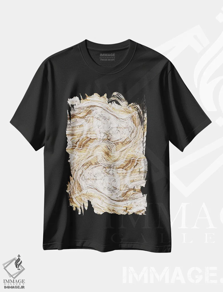 تیشرت سفید طرح دار انتزاع طلایی ۳ اثر دنیس براون | فروشگاه ایماژ تیشرت طرح دار انتزاع طلایی اثر دنیس براون