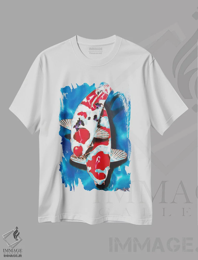 تیشرت سفید طرح دار ۲ ماهی کوی، دکور آسیایی اثر دنیل ژان-باپتیست | فروشگاه ایماژ تیشرت طرح دار ماهی کوی اثر دنیل ژان-باپتیست