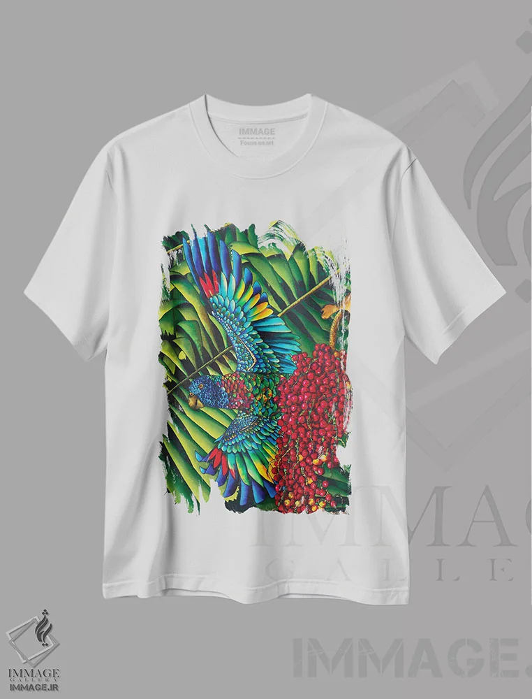 تیشرت سفید طرح دار طوطی سن لوسیا، تزئینی اثر دنیل ژان-باپتیست | فروشگاه ایماژ تیشرت طرح دار طوطی سن لوسیا اثر دنیل ژان-باپتیست