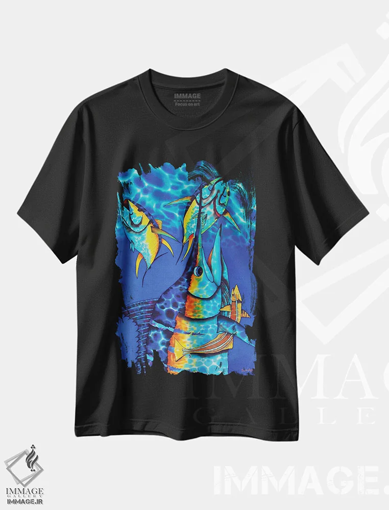 تیشرت مشکی طرح دار ۱ ماهی کوی، دکور آسیایی اثر دنیل ژان-باپتیست | فروشگاه ایماژ تیشرت طرح دار ماهی کوی اثر دنیل ژان-باپتیست