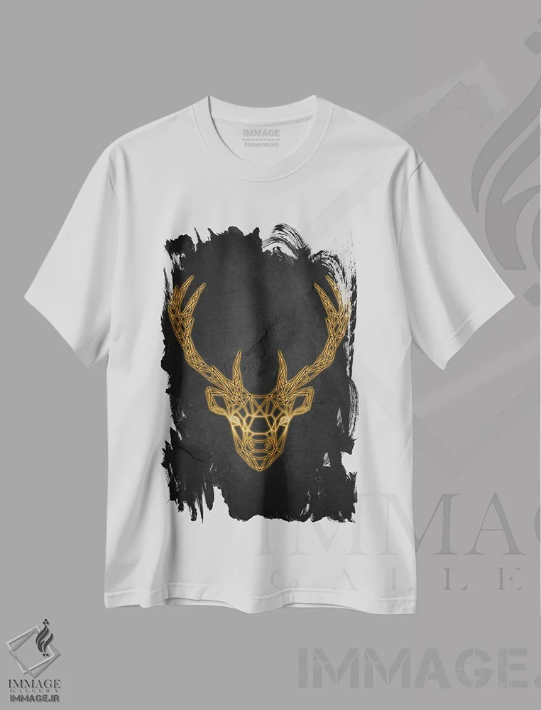 تیشرت سفید طرح دار گوزن هندسی، هنر دیجیتال اثر دورو آرت | فروشگاه ایماژ تیشرت طرح دار گوزن هندسی اثر دورو آرت