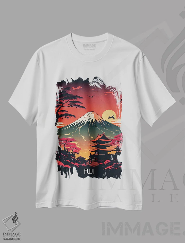 تیشرت سفید طرح دار پوستر فوجی، هنر دیجیتال اثر دورو آرت | فروشگاه ایماژ تیشرت طرح دار پوستر فوجی اثر دورو آرت