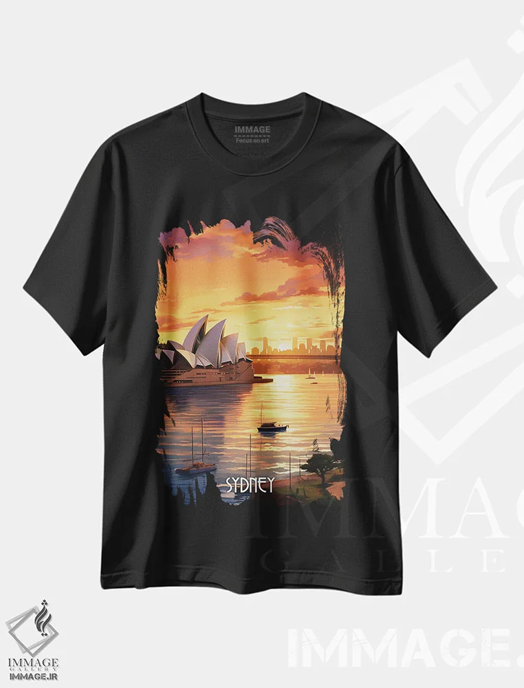 تیشرت مشکی طرح دار هنر شهر سیدنی، هنر دیجیتال اثر دورو آرت | فروشگاه ایماژ تیشرت طرح دار هنر شهر سیدنی اثر دورو آرت
