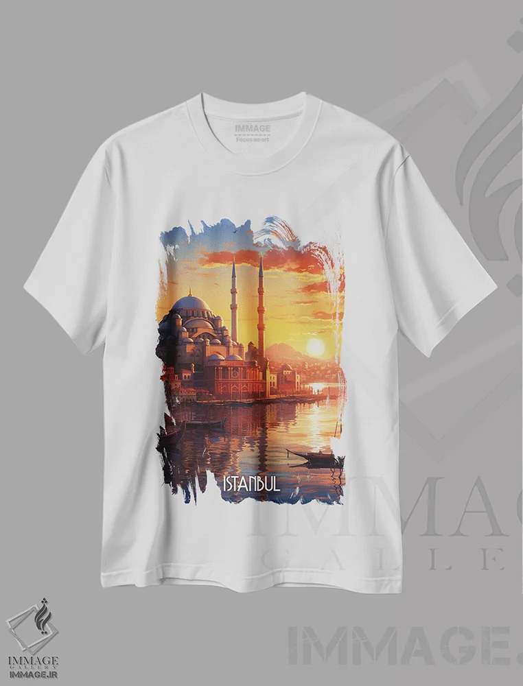 تیشرت سفید طرح دار هنر شهر استانبول، هنر دیجیتال اثر دورو آرت | فروشگاه ایماژ تیشرت طرح دار هنر شهر استانبول اثر دورو آرت