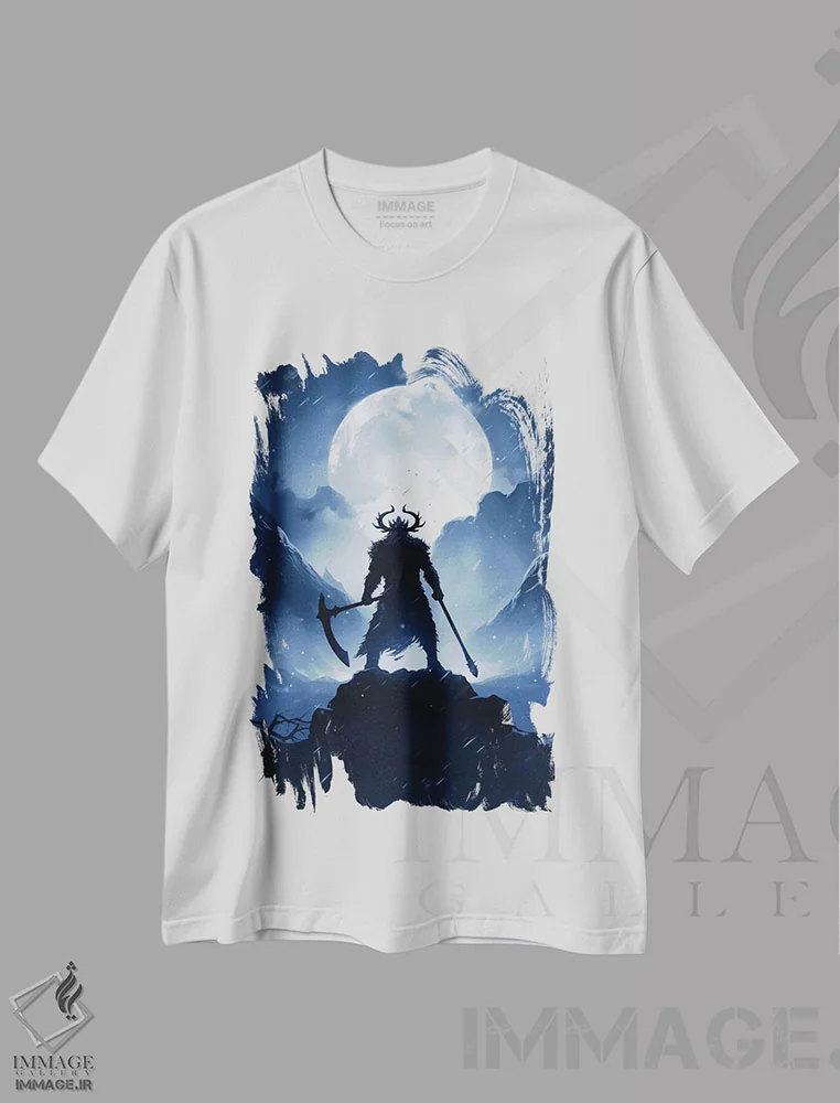 تیشرت سفید طرح دار جنگجوی وایکینگ IV، دکوراسیون جایگزین اثر دورو آرت | فروشگاه ایماژ تیشرت طرح دار جنگجوی وایکینگ IV اثر دورو آرت