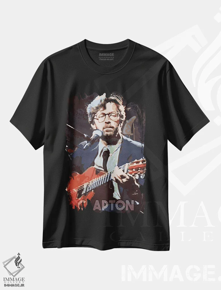 تیشرت مشکی طرح دار کلاپتون، وینتیج و رترو اثر دورو آرت | فروشگاه ایماژ تیشرت طرح دار کلاپتون اثر دورو آرت