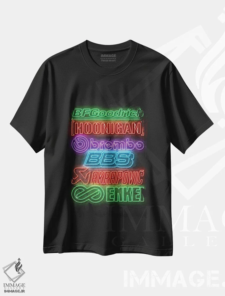 تیشرت مشکی طرح دار اسپانسرهای ماشین نئونی II، هنر دیجیتال اثر دورو آرت | فروشگاه ایماژ تیشرت طرح دار اسپانسرهای ماشین نئونی II اثر دورو آرت
