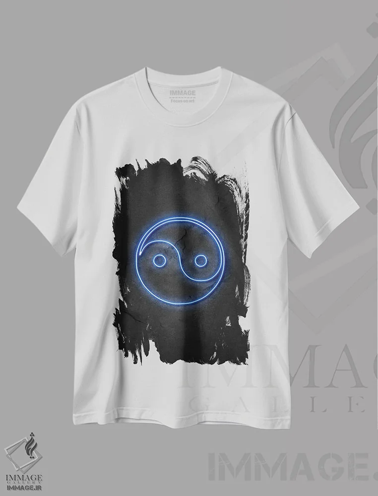 تیشرت سفید طرح دار یین و یانگ، هنر دیجیتال اثر دورو آرت | فروشگاه ایماژ تیشرت طرح دار یین و یانگ اثر دورو آرت