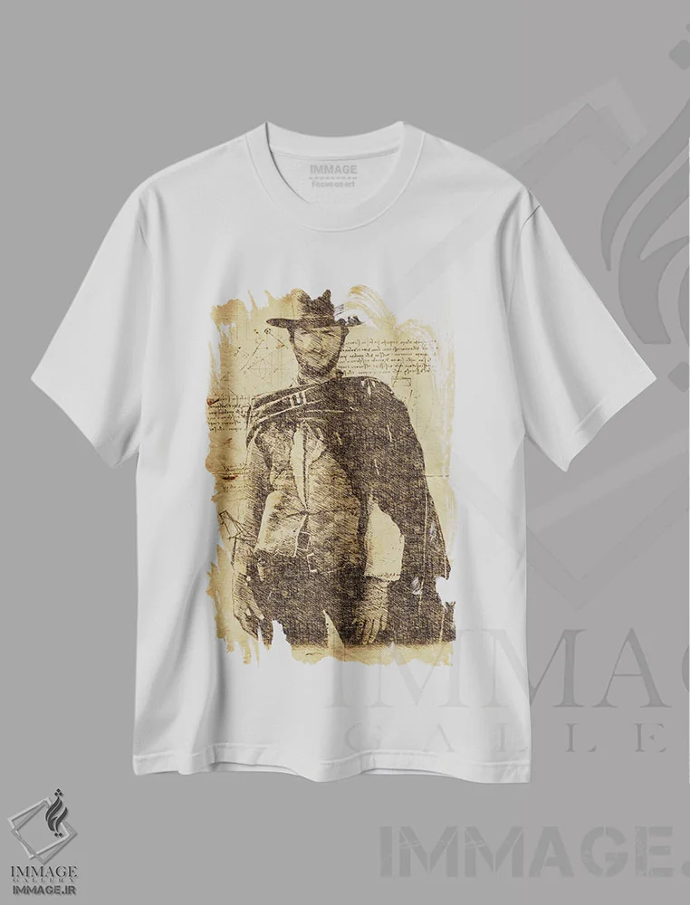 تیشرت سفید طرح دار کلینت ایستوود داوینچی، وینتیج و رترو اثر دورو آرت | فروشگاه ایماژ تیشرت طرح دار کلینت ایستوود داوینچی اثر دورو آرت