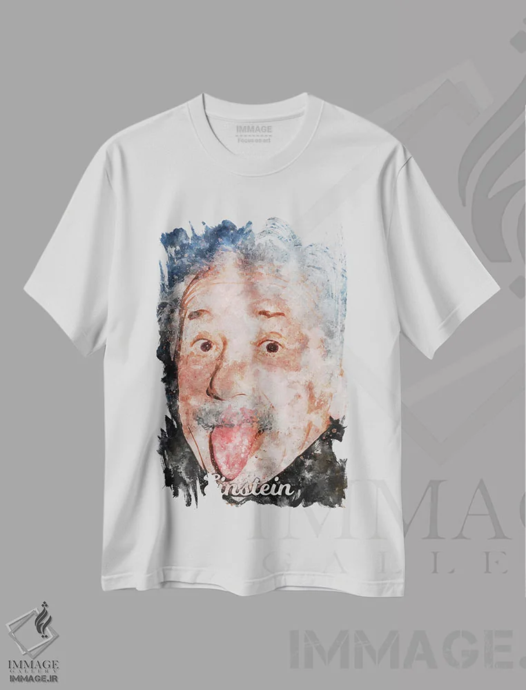 تیشرت سفید طرح دار اینشتین آبرنگی، مدیوم اثر دورو آرت | فروشگاه ایماژ تیشرت طرح دار اینشتین آبرنگی اثر دورو آرت
