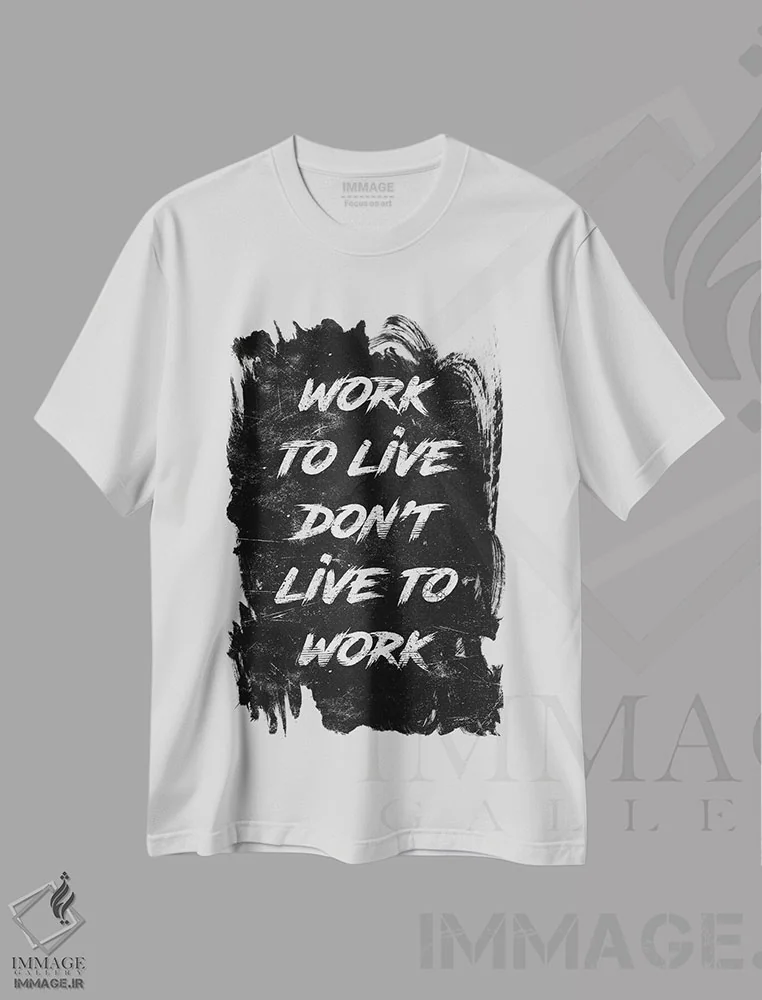 تیشرت سفید طرح دار کار کن برای زندگی، تایپوگرافی اثر دورو آرت | فروشگاه ایماژ تیشرت طرح دار کار کن برای زندگی اثر دورو آرت