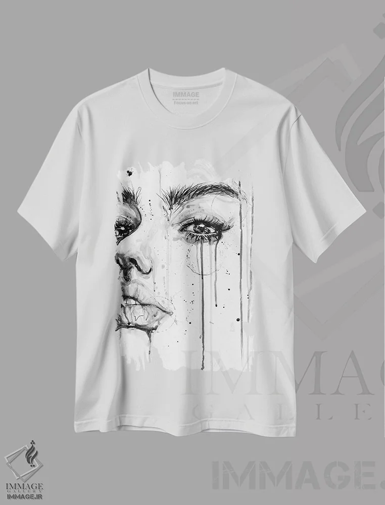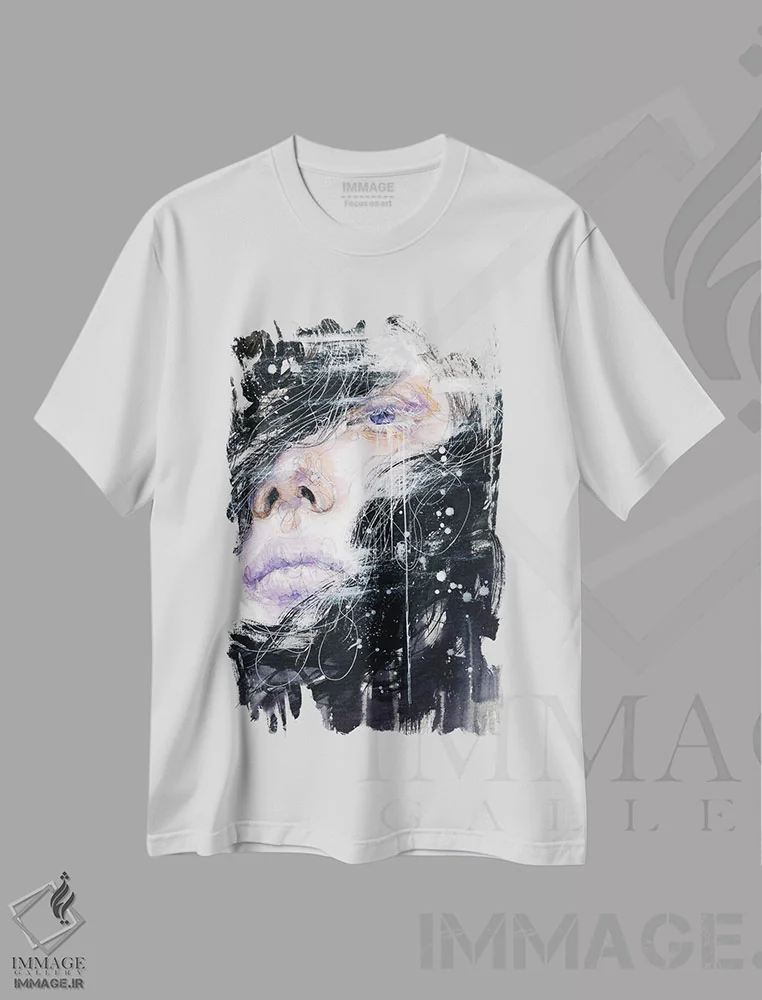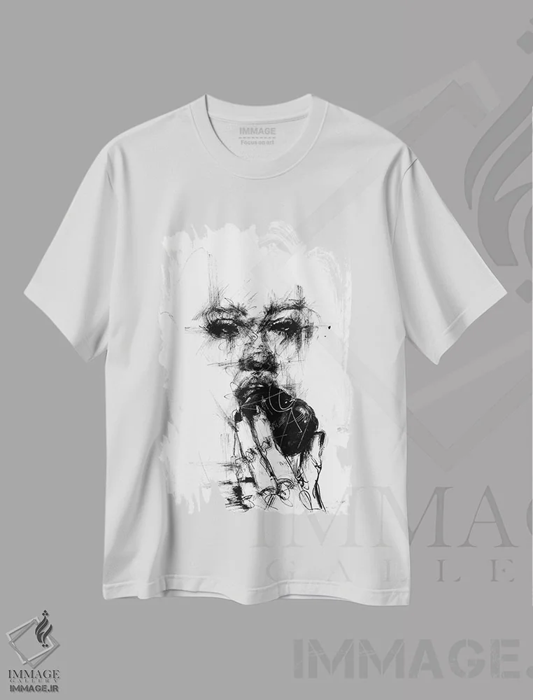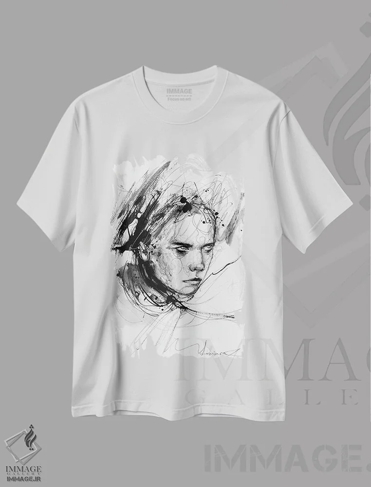 تیشرت سفید طرح دار داستان او، دکوراسیون جایگزین اثر دوریانا پوپا | فروشگاه ایماژ