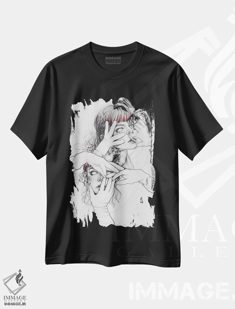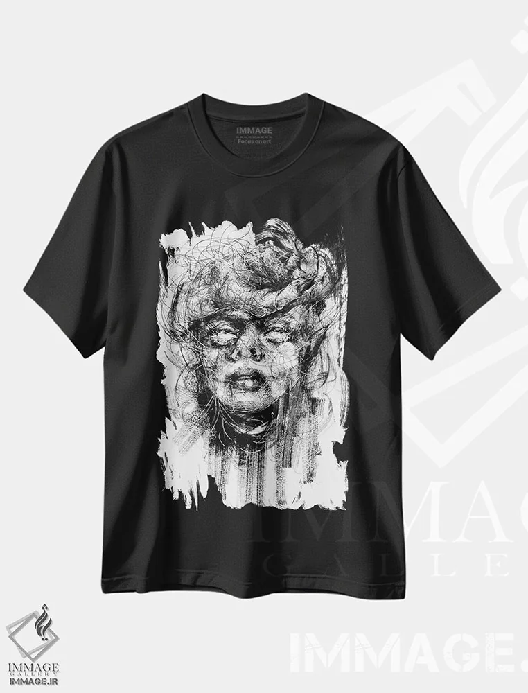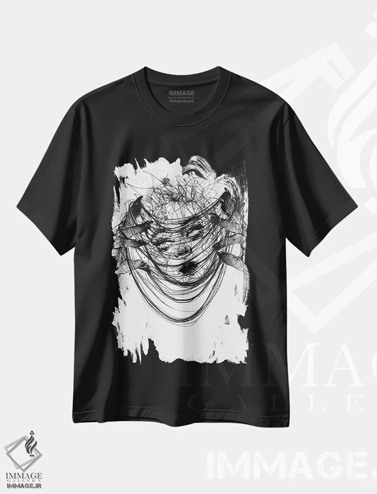 تیشرت مشکی طرح دار یگانه، دکوراسیون جایگزین اثر دوریانا پوپا | فروشگاه ایماژ