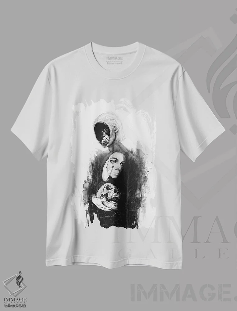 تیشرت سفید طرح دار زیبایی در تاریکی، دکوراسیون جایگزین اثر دوریانا پوپا | فروشگاه ایماژ