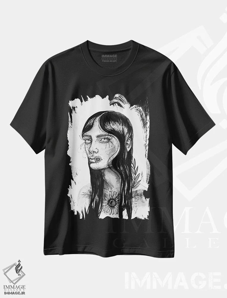 تیشرت مشکی طرح دار مهتاب، دکوراسیون جایگزین اثر دوریانا پوپا | فروشگاه ایماژ