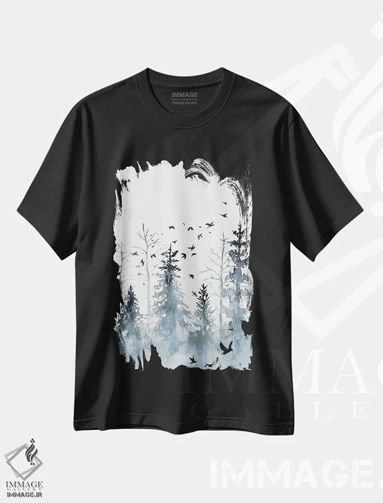 تیشرت مشکی طرح دار در دل جنگل، دکوراسیون جایگزین اثر دوریانا پوپا | فروشگاه ایماژ