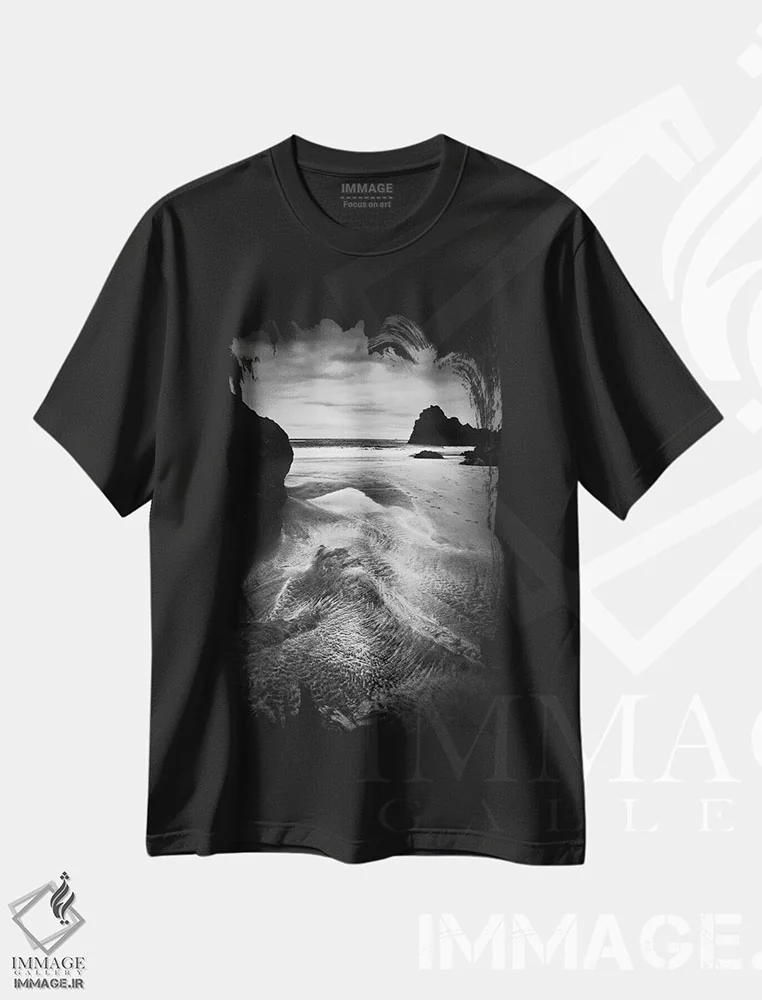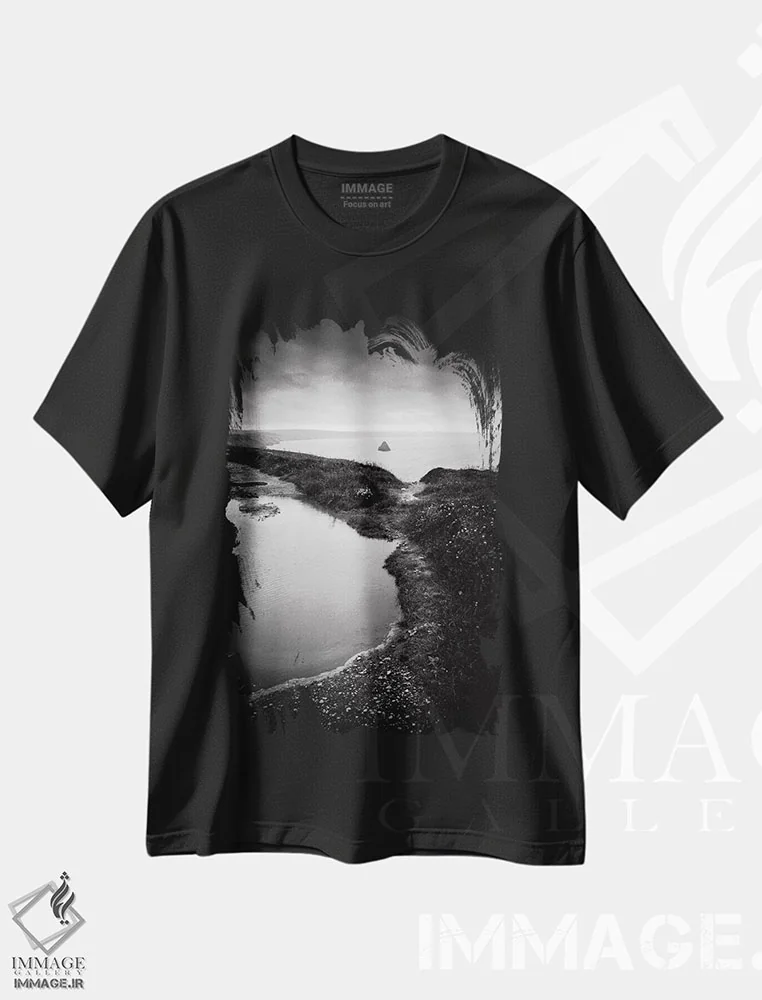 تیشرت مشکی طرح دار خلیج تاریک، عکاسی سیاه و سفید اثر دوریت فوگ | فروشگاه ایماژ