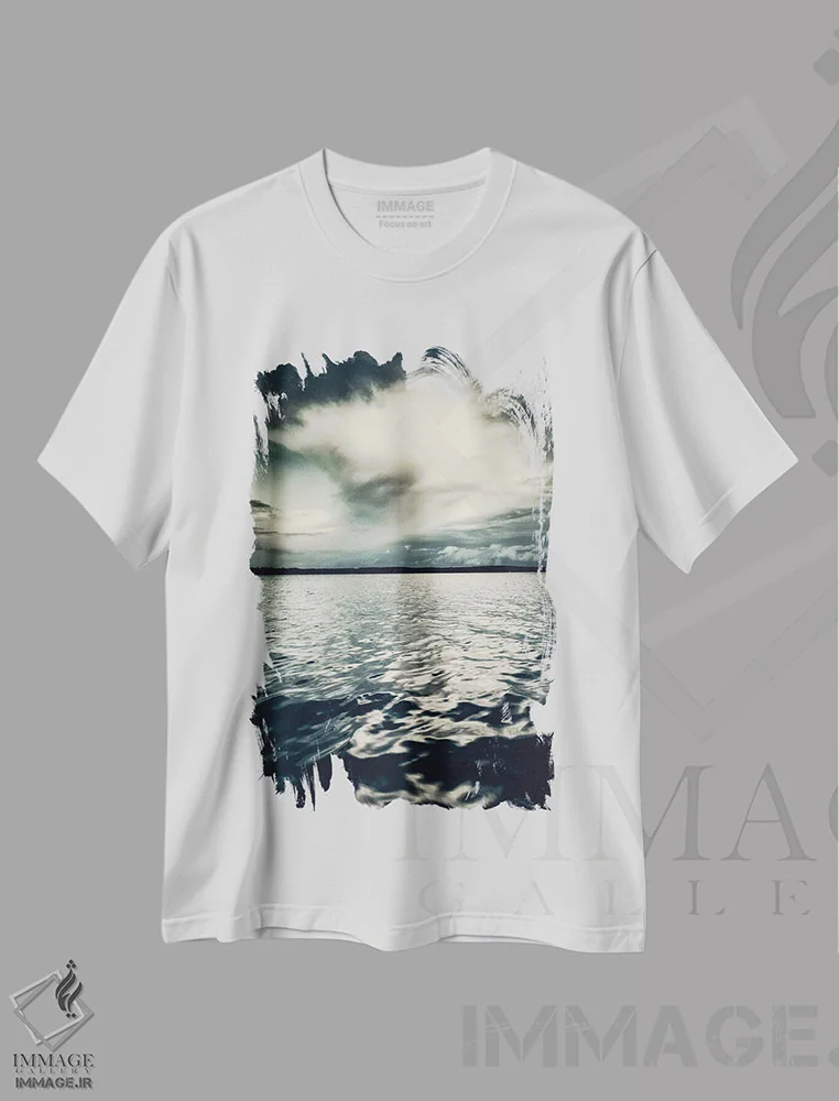 تیشرت سفید طرح دار اقیانوس و ابر، عکاسی سیاه و سفید اثر دوریت فوگ | فروشگاه ایماژ