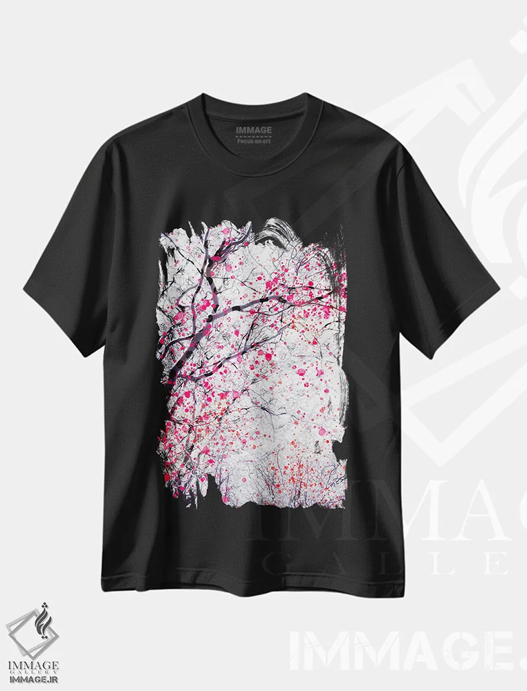 تیشرت مشکی طرح دار درخت شکوفه آتشین ۳، عکاسی ترکیبی اثر دوریت فوگ | فروشگاه ایماژ