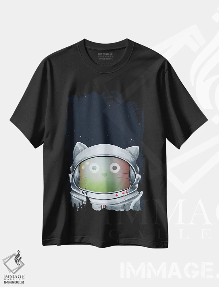تیشرت مشکی طرح دار گربهٔ فضانورد، هنر دیجیتال اثر دوزال | فروشگاه ایماژ