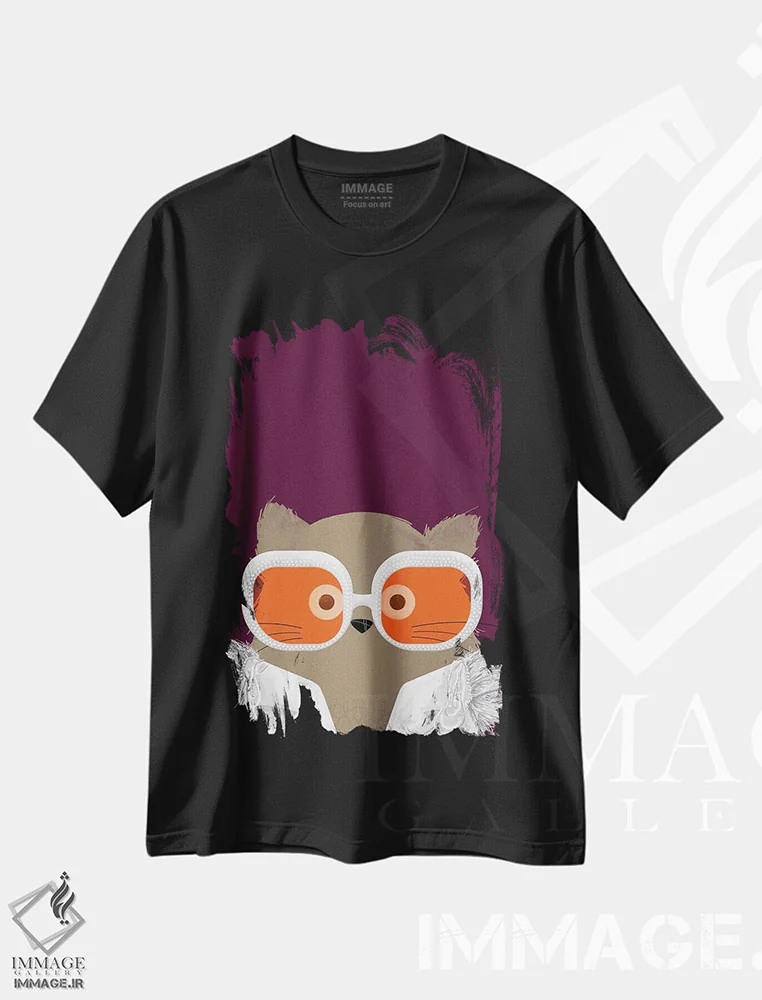 تیشرت مشکی طرح دار گربهٔ التون، هنر دیجیتال اثر دوزال | فروشگاه ایماژ
