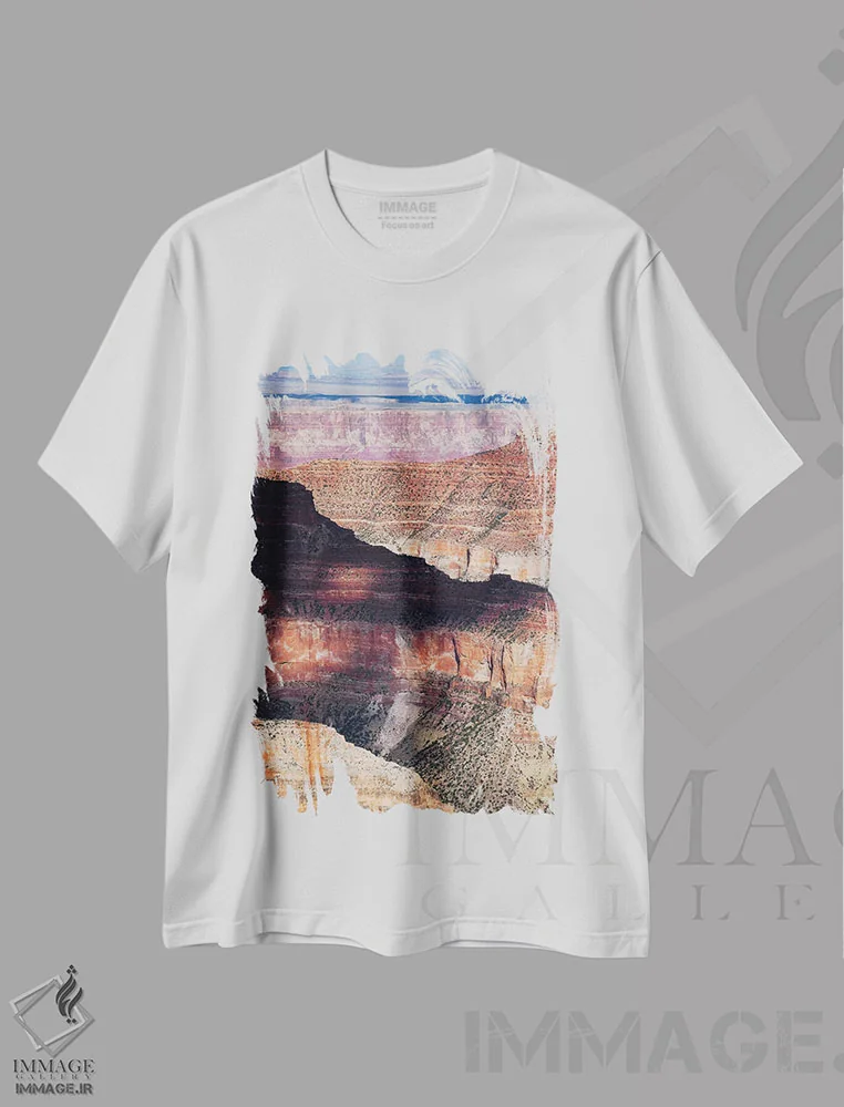 تیشرت سفید طرح دار غروب در دره، مدیوم اثر دیو بومن | فروشگاه ایماژ تیشرت طرح دار غروب در دره اثر دیو بومن