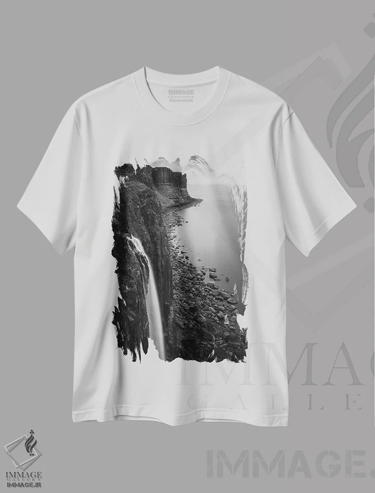 تیشرت سفید طرح دار آرامش، عکاسی سیاه و سفید اثر دیو بومن | فروشگاه ایماژ تیشرت طرح دار آرامش اثر دیو بومن