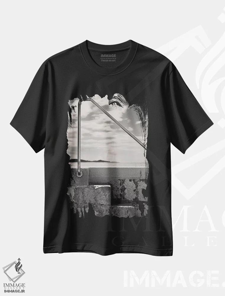 تیشرت مشکی طرح دار نرده، عکاسی سیاه و سفید اثر دیو بومن | فروشگاه ایماژ تیشرت طرح دار نرده اثر دیو بومن