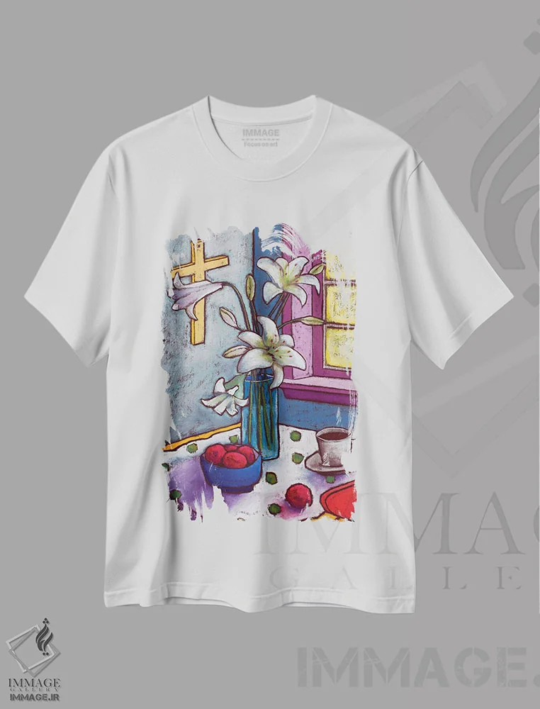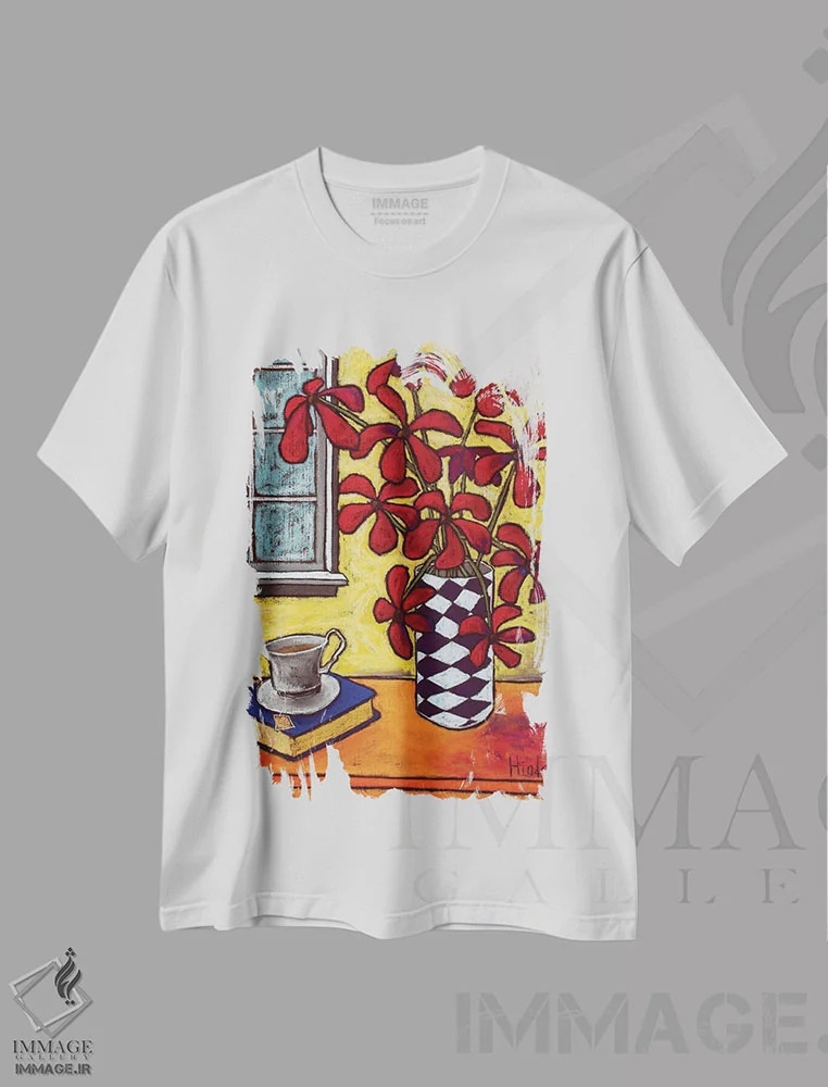 تیشرت سفید طرح دار نعمت باغچه، دکور معاصر اثر دیویدای هینْدز | فروشگاه ایماژ تیشرت طرح دار نعمت باغچه اثر دیویدای هینْدز