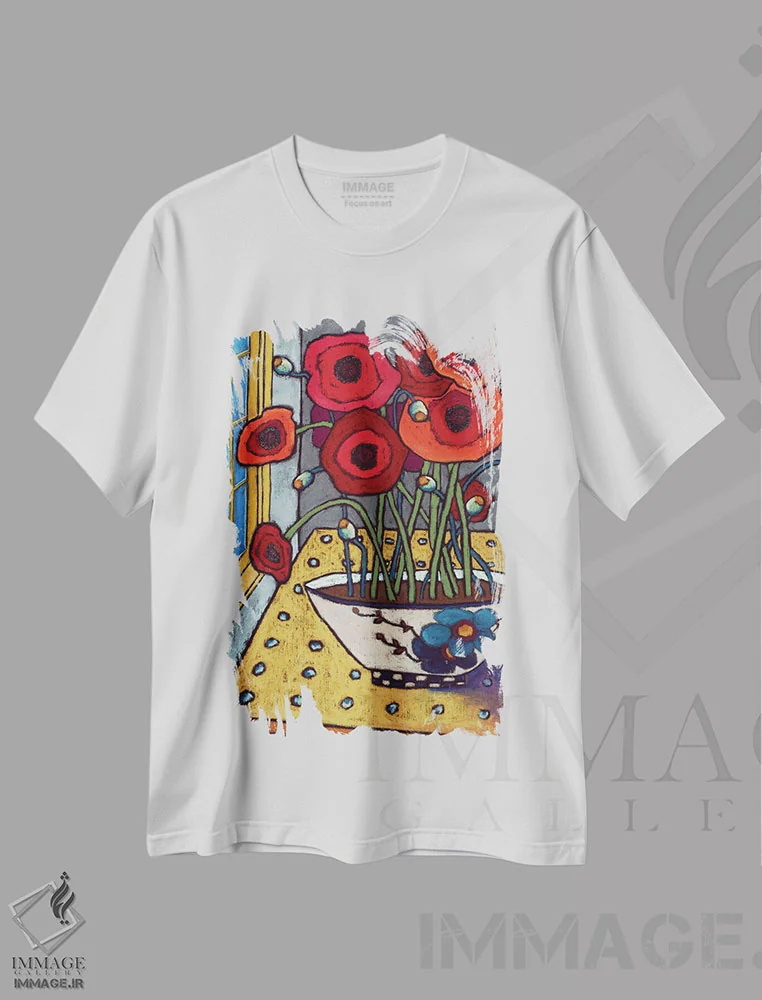 تیشرت سفید طرح دار شقایق ها II، تزئینی اثر دیویدای هینْدز | فروشگاه ایماژ تیشرت طرح دار شقایق ها II اثر دیویدای هینْدز