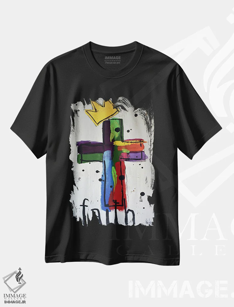 تیشرت مشکی طرح دار صلیب ایمان، تزئینی اثر دیویدای هینْدز | فروشگاه ایماژ تیشرت طرح دار صلیب ایمان اثر دیویدای هینْدز