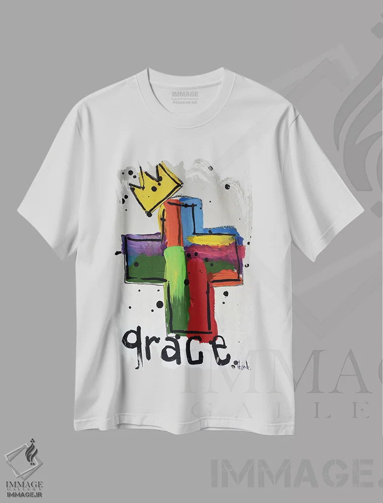 تیشرت سفید طرح دار صلیب بخشایش، تزئینی اثر دیویدای هینْدز | فروشگاه ایماژ تیشرت طرح دار صلیب بخشایش اثر دیویدای هینْدز