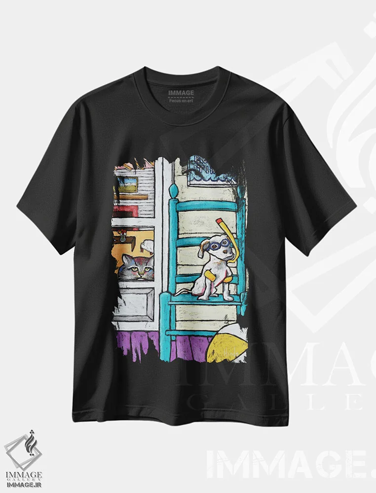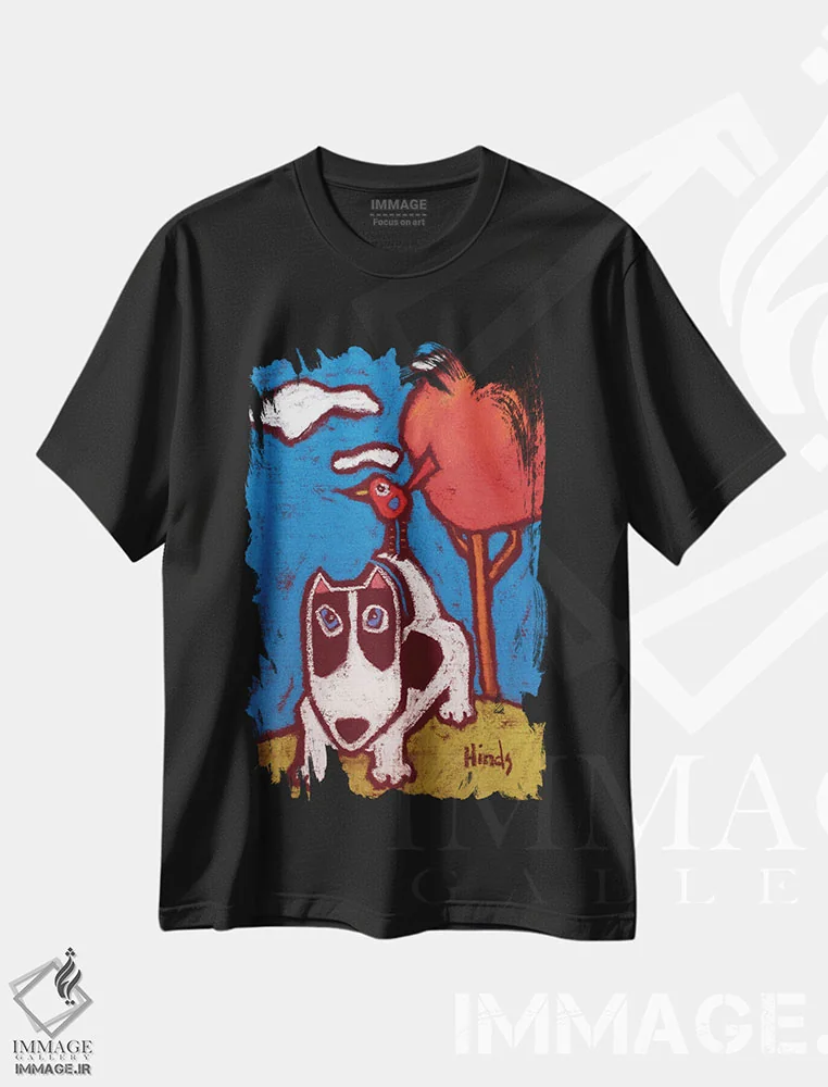 تیشرت مشکی طرح دار واق واق، تزئینی اثر دیویدای هینْدز | فروشگاه ایماژ تیشرت طرح دار واق واق اثر دیویدای هینْدز