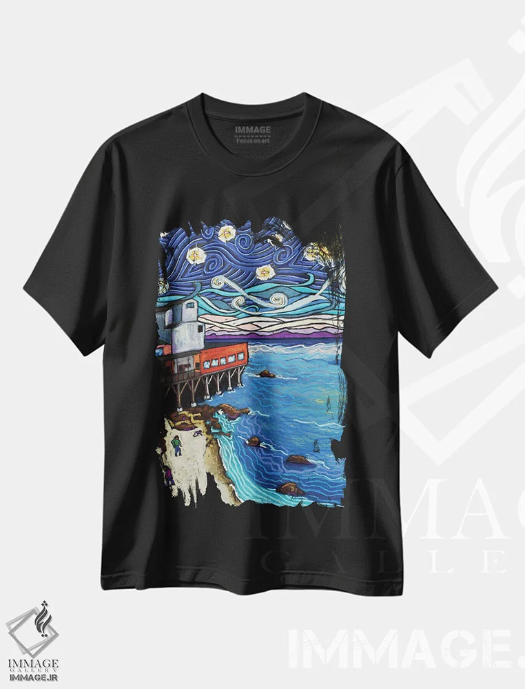 تیشرت مشکی طرح دار شب پرستاره بر فراز خلیج مونتری، تزئینی اثر دیویدای هینْدز | فروشگاه ایماژ تیشرت طرح دار شب پرستاره بر فراز خلیج مونتری اثر دیویدای هینْدز