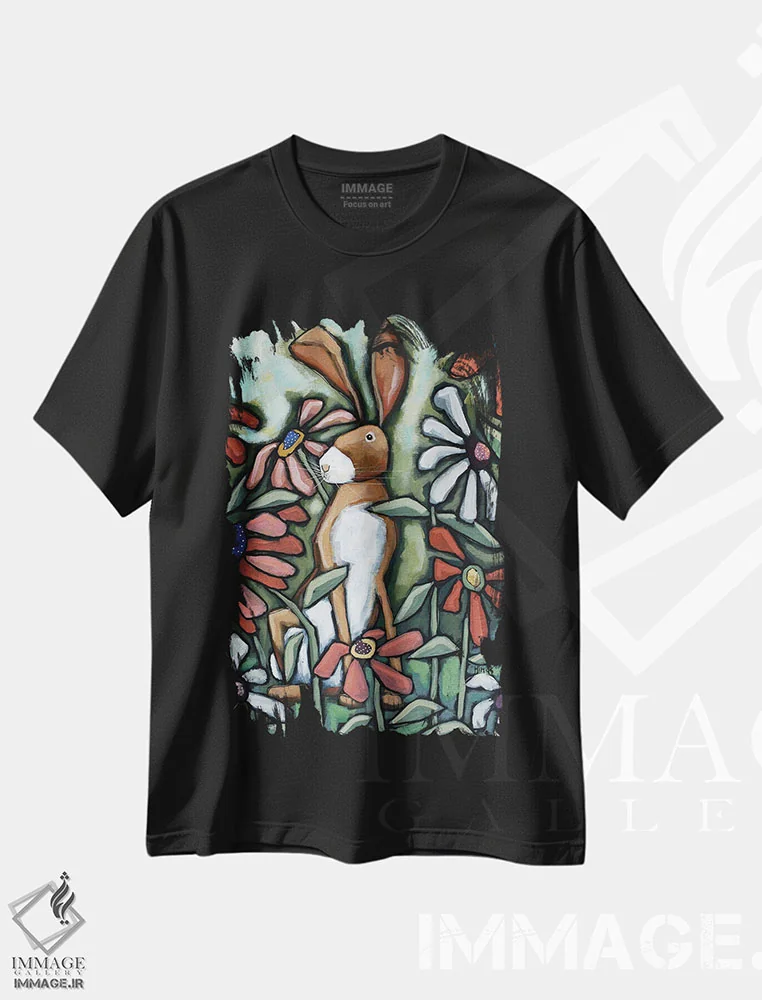 تیشرت مشکی طرح دار خرگوش قهوه ای، تزئینی اثر دیویدای هینْدز | فروشگاه ایماژ تیشرت طرح دار خرگوش قهوه ای اثر دیویدای هینْدز