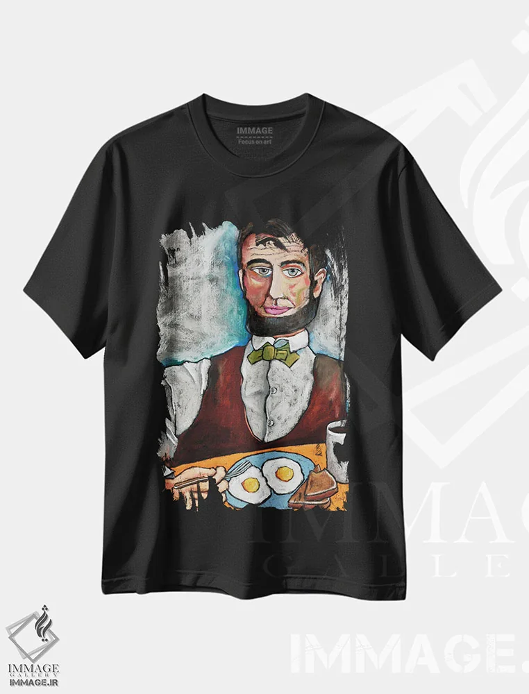 تیشرت سفید طرح دار آبراهام لینکلن خودمانی، دکور آمریکایی اثر دیویدای هینْدز | فروشگاه ایماژ تیشرت طرح دار آبراهام لینکلن خودمانی اثر دیویدای هینْدز