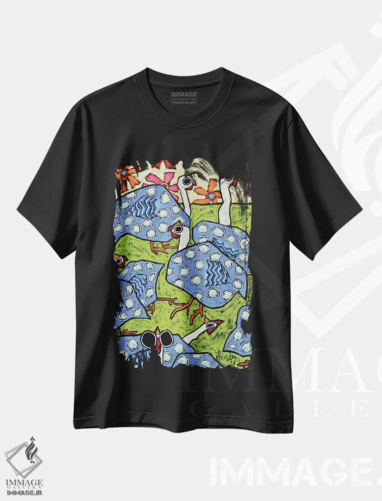 تیشرت مشکی طرح دار مرغ گینه و جوجه هایش، تزئینی اثر دیویدای هینْدز | فروشگاه ایماژ تیشرت طرح دار مرغ گینه و جوجه هایش اثر دیویدای هینْدز
