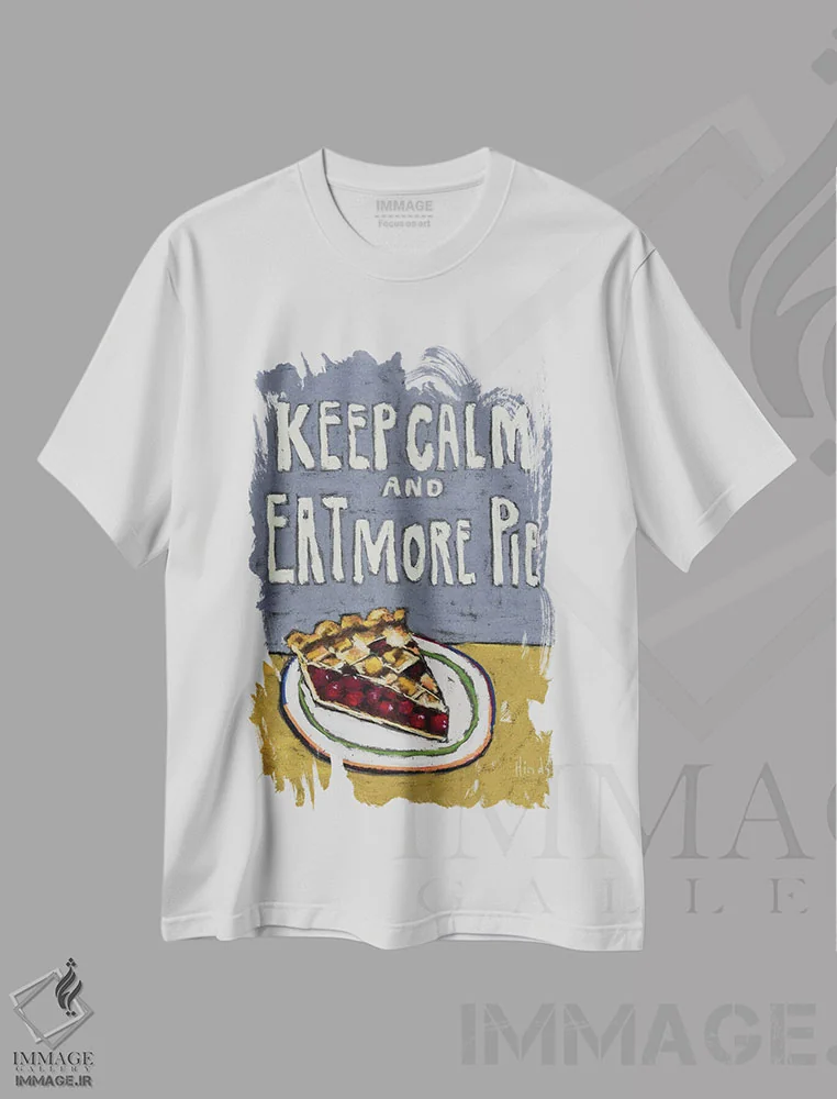 تیشرت سفید طرح دار آرام باش و بیشتر پای بخور، تزئینی اثر دیویدای هینْدز | فروشگاه ایماژ تیشرت طرح دار آرام باش و بیشتر پای بخور اثر دیویدای هینْدز