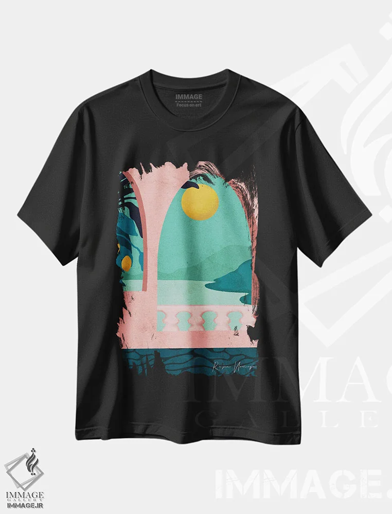 تیشرت مشکی طرح دار صحرا، تزئینی اثر رینا نوریگا | فروشگاه ایماژ تیشرت طرح دار صحرا اثر رینا نوریگا