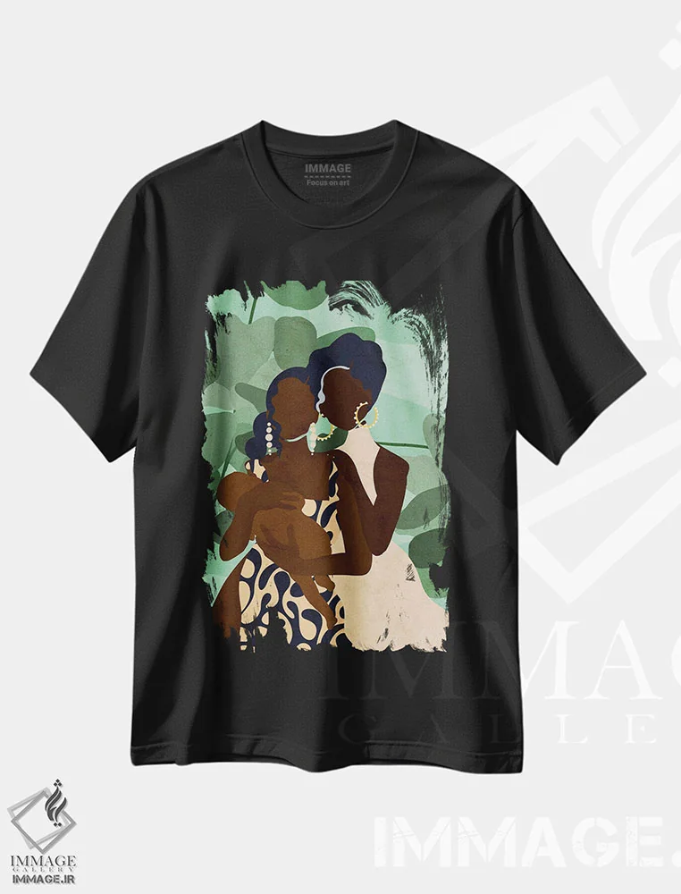 تیشرت مشکی طرح دار حال و هوا، هنر آمریکایی آفریقایی تبار اثر رینا نوریگا | فروشگاه ایماژ تیشرت طرح دار حال و هوا اثر رینا نوریگا