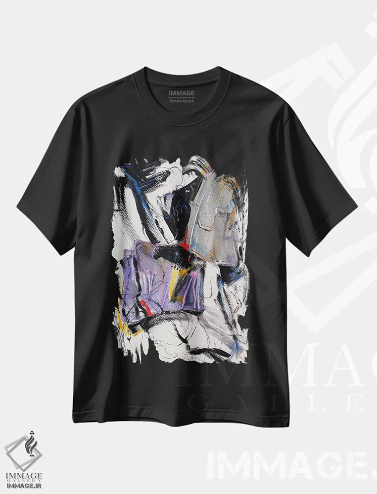 تیشرت مشکی طرح دار نمای انتزاعی اثر سو بنگ لیم | فروشگاه ایماژ