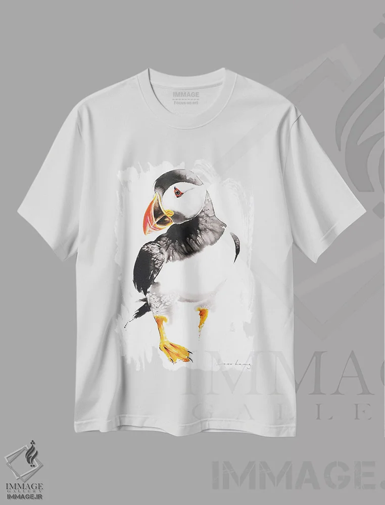 تیشرت سفید طرح دار پافین ۳، دکور معاصر اثر سو بنگ لیم | فروشگاه ایماژ