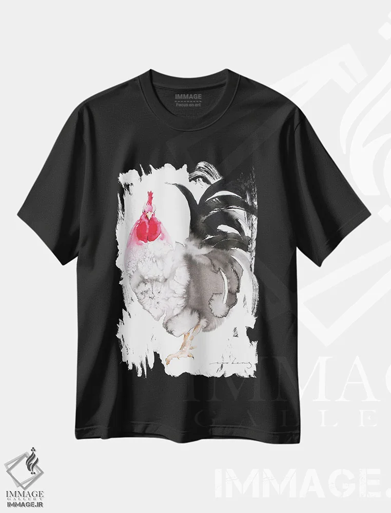 تیشرت مشکی طرح دار جذابیت خروس، دکور معاصر اثر سو بنگ لیم | فروشگاه ایماژ
