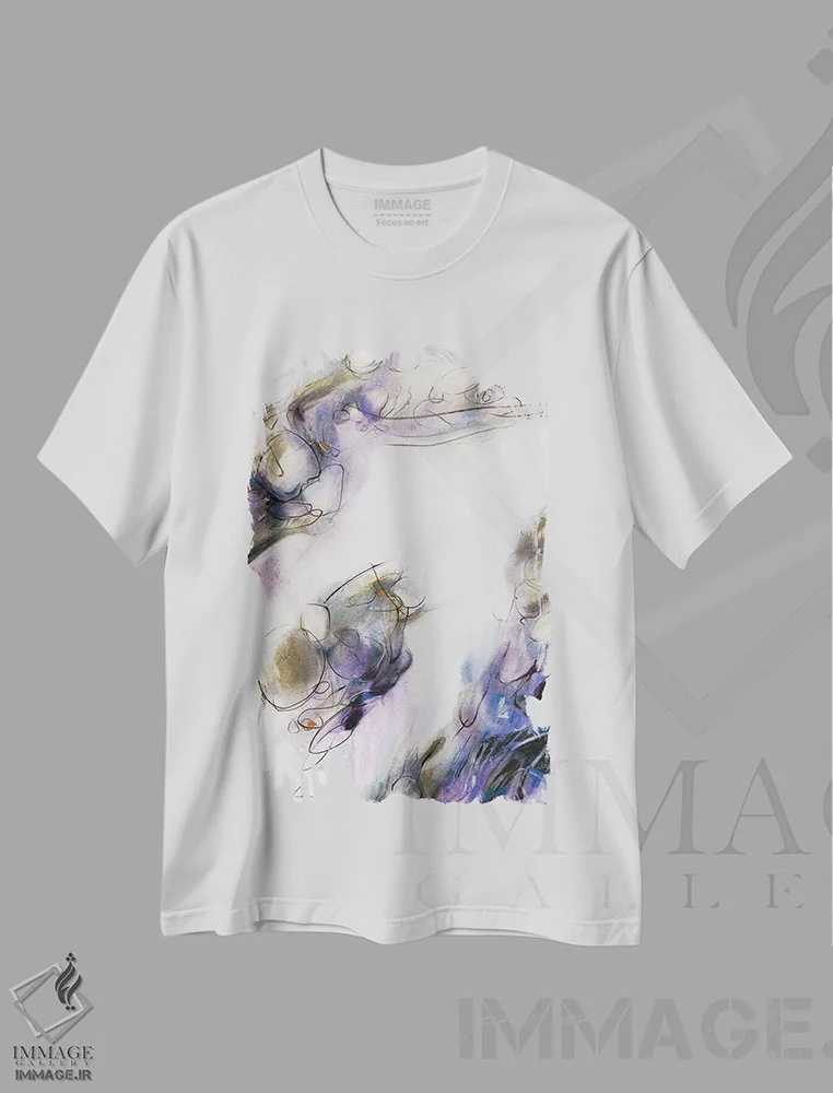 تیشرت سفید طرح دار انتزاعی روان اثر سو بنگ لیم | فروشگاه ایماژ